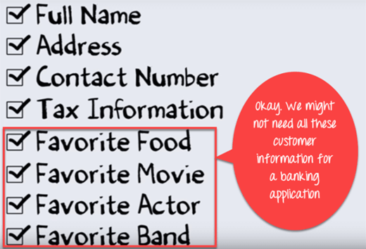 So, you need to select only the useful information for your banking application from that pool. Data like name, address, tax information, etc. make sense for a banking application